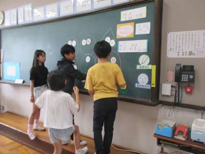 4,5,6年生はハングル子音の学習をしました。イラストカードやマグネットを使い復習や新しい学習に取り組んでいます。根気のいる学習ですが,みんなで楽しく学んでいけたらいいなと思います。