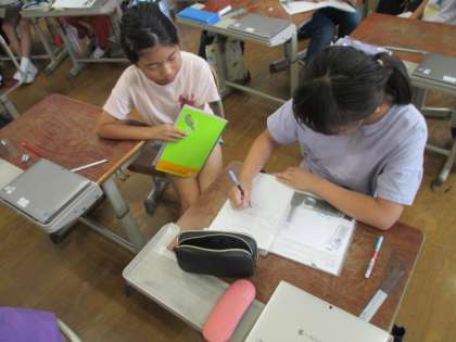 土曜日にも関わらず、子どもたちは朝から頑張りました。1時間目は理科の授業でした。「地面を流れる水のゆくえ」の最初の授業で、養正小学校の水たまりがどこにできるのか、その水はどこへ流れていくのかを考えました。最後には、その予想を確かめる実験方法まで考えました。色々なアイデアが出てきて、次回以降の実験が楽しみです。