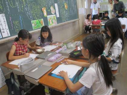 理科の学習では育てているチョウの幼虫の観察をしました。少しの期間で大きくなっていることに子どもたちも驚いていました。