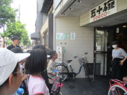 養正小学校の周りには、たくさんの外国のお店があります。今日は実際に校区を歩き、どんな国のお店があるか確認しました。わずか200メートルほどの距離の間に中華料理屋さんが8件ほどあり、子どもたちも驚いていました。タコスを売っているお店や韓国料理のお店など様々な国のお店があることが分かり、「どうして養正にはこんなにたくさんの外国のお店があるのだろう」「どんな人が来るのだろう」など様々な疑問が出てきたようです。