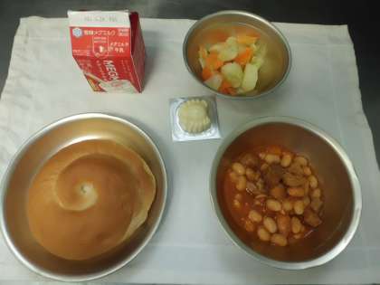 今日の給食は,バターうずまきパン・牛乳・ポークビーンズ・野菜のホットマリネ・チーズでした。ポークビーンズは,ケチャップ味で大豆もやわらかく,よく煮込んでありおいしかったです。子どもたちはチーズも,パンと一緒に食べたらおいしい・・・・といいながら食べていました。
