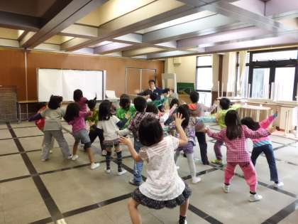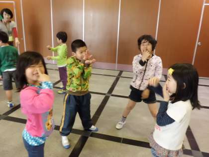 ペアになって,「ドラえもん」と「あんぱんまん」になったり,「フォーク」と「スプーン」になったり,グループでは「3びきの子ぶた」と「オオカミ」に変身したり・・・