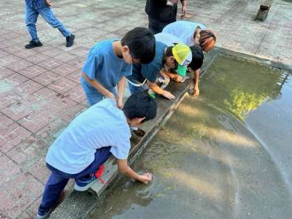 放課後、4・5年生の子どもたちが学校にやってきました。『公園のベンチに落書きがしてあります。』『このままにしておくと、明日のクリーンキャンペーンの時にみんなが気になってしまいます。』と言って、落書きを消すためのぞうきんやたわしなどを学校に借りに来ました。とても素敵です。落書きが良くないことであることや、それを目にする人の気持ち、見て見ぬふりをしてはいけないことなど、子どもたちはたくさんの大切なことにしっかりと気付くことができているのだと感じました。そして、それを行動に移していくことができることがとても素晴らしいなと思いました。子どもたちは、ベンチから落書きが消えるまで何度も何度もぞうきんでこすったり、たわしでこすったりしていました。