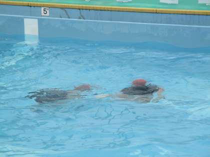 水泳のいろいろな遊び方を動画で確認しました。実際にプールでは,バディと話合いながら,活動の場を決めて楽しんでいました。