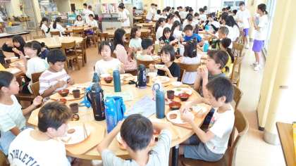 ご飯とパンが選べます。どちらも食べることもできます。バランスよくとっている子も多く感心しました。