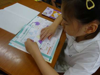 回したり裏返したりしながら、ぴったり合う形を見つけます。