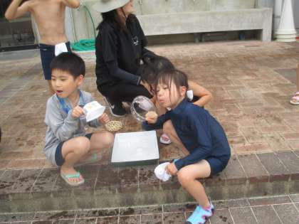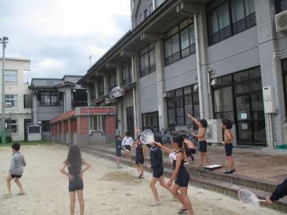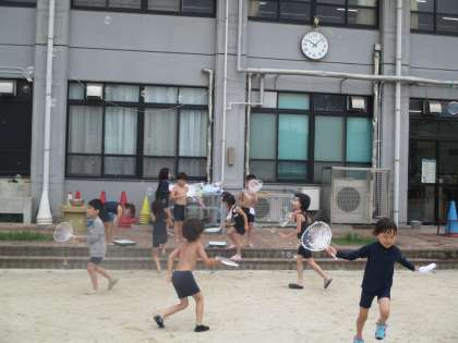 生活科「なつとともだち」ではシャボン玉遊びをしました。今日は風があり高くのぼっていくシャボン玉にとても喜んでいました。大きいものを作ったり,飛んできたシャボン玉を手でわったり,楽しんでいました。