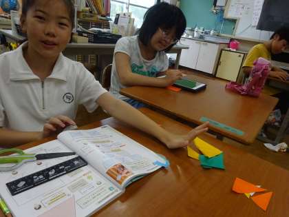 重ねたり裏返したりしながら考え、理由も説明できましたね。