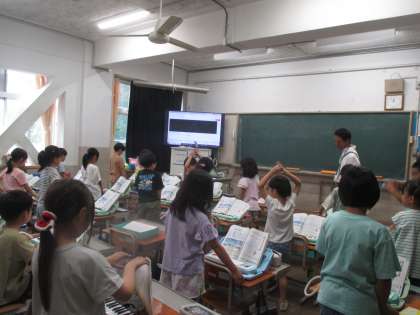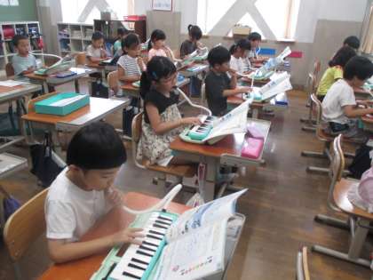 歌を元気よく歌っています。自然にリズムにのる子や振付けをする子,可愛らしかったです。鍵盤ハーモニカでは,何度も練習して,「今日初めて吹けた!」という子もいました。できるようになるとやっぱりうれしいですね。これからも音楽だけでなく,他教科でも「できた!」がたくさん増えていくように寄り添っていきたいと思います。