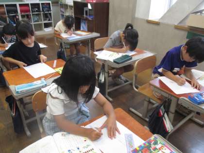 夏といえばを出し合い,絵や文で表現しました。いろんな夏が集まりました。