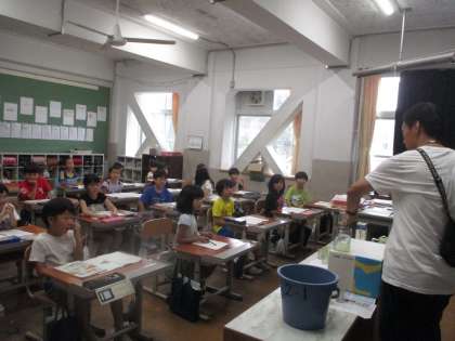 mlを学習しました。実際に色水を使って1Lには,何ml入るのか確認しました。