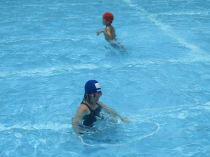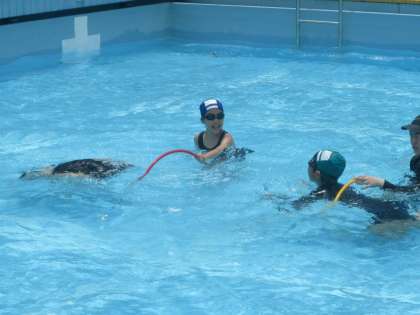 今年最後の水泳でした。水中に並べたフラフープの中をくぐったり、前回りをしたりして楽しみました。フラフープにさわらないようにくぐるのが面白かったですね。