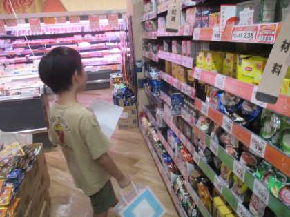 ポップコーンの試作をするため、材料を買いに行きました。商品がどこにあるのかを店員さんに聞いたり、おつりがでないように小銭をだすことができました。お買い物マスターですね。