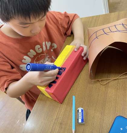 国語で「ミリーのすてきなぼうし」というお話を学習しました。今日は、自分が想像するぼうしを実際に作ってみました。ボンドでくっつけて完成です。明日かぶるのが楽しみですね。
