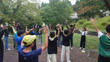 花背山の家宿泊学習の3日目の朝です。みんな元気に起きてきて、すぐに寝具の片付けを協力して行いました。7時からは朝の集い。ラジオ体操で体を動かし、最終日の活動に向けて心と体の準備はOKです。