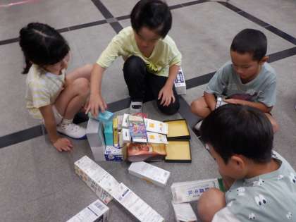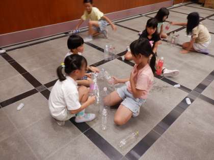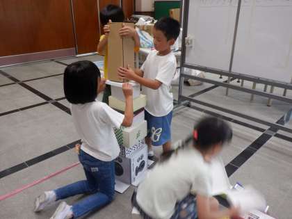 生活科の学習で、集めた材料を使って遊びました。箱やペットボトルを使って、いろいろな遊びを思いつきました。子どもたちの発想がすごくおもしろかったです。