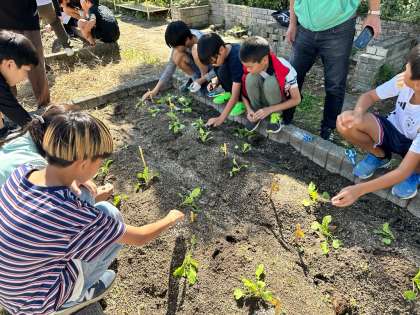 今日は、大根の芽の間引きを行いました。大きすぎず、虫に葉を食べられていない元気の良い1本を選ばなければいけないということで、子どもたちはとても慎重に残す芽を選んでいました。間引きを行った後には、芽と芽の間に肥料をまきました。