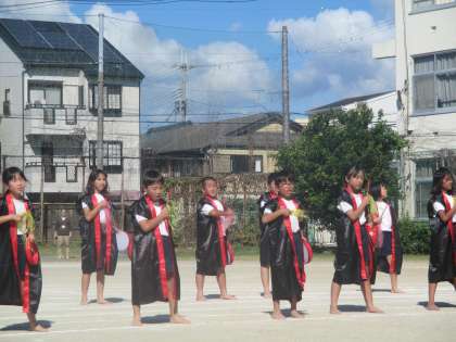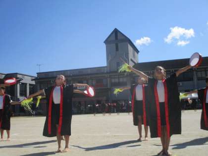 中学年演技では、子どもたちの真剣なまなざし、しっかりと揃った動き、パーランクーの音色・・・すべてが素晴らしく、本当に胸が熱くなりました。子どもたち自身、とても思いを込めて踊っていたと思います。とても素敵な演技でした。