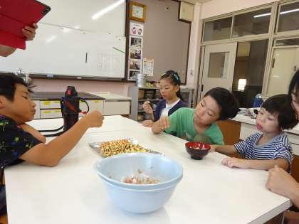 交流に来てくれた友だちとも協力しながら、てきぱきと調理をすることができました。
