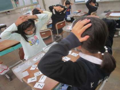 ポインティングゲームでは「M」や「N」、「B」や「V」など発音が似ているものがたくさんあり、どのアルファベットを先生が言っているのか聞き取るのが難しいようでした。アルファベットビンゴでは友だちとたずね合いながらビンゴを完成させていきました。子どもたちも楽しんで取り組めたようです。