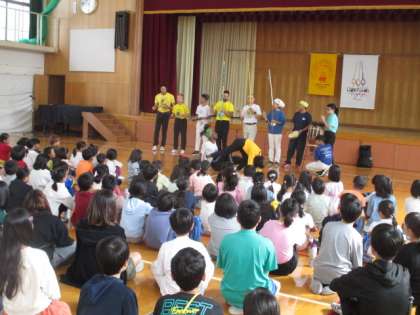 夏に引き続き、ブラジルの文化に触れる「オータムコンサート」が本校体育館にて行われました。今回のコンサートは、演奏を聞くばかりではなく、自分たちがカポエイラに参加しながら楽しみました。