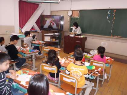 最後は,作った折り紙を全部つなげて,大きな飾りにしました。 教室に飾る予定です。きっと,教室が楽しくなることと思います。