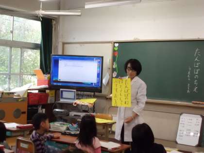 学習のはじめに,たんぽぽ博士が2年生の教室にやってきて「たんぽぽのちえクイズ」をしてくれました。難しいクイズもありました。「たんぽぽのちえ」をじっくり読んでいくと分かります。