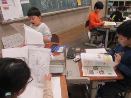 子どもたちは地図や資料から京都市の様子がどのように変わっていっているのか、また変わっていないところもあるのではないかと考えながら活動することができています。