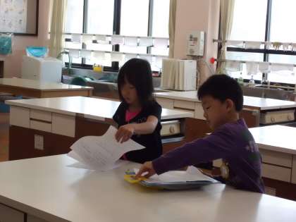 「1年生が,一番びっくりしたのは理科室でした。でも,ぼくも,がいこつにびっくりしたよ。」