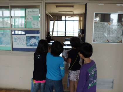 1年生を学校たんけんに連れて行きました。紹介したい部屋には,手作りの看板をはりました。いつどんな時に使う部屋なのか,使うときの注意も教えてあげました。