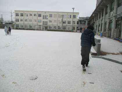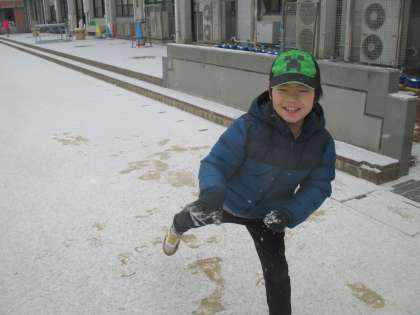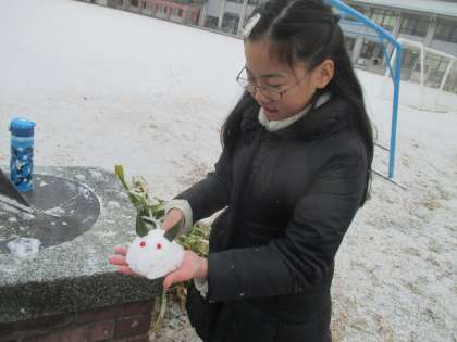 今日は雪が降ったので、雪の中で遊びました。雪合戦をしたり、雪ウサギやミニかまくらを作ったりとても楽しそうでした。