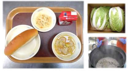 今日の給食は 味つけコッペパン 牛乳 肉団子のスープ煮 じゃがいものいためもの です。