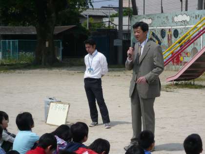 地震に対する避難訓練をしました。どの学年も放送を静かに聞いて、すみやかに運動場に避難することができました。全員の避難を確認して、最後に校長先生から今回の訓練の反省をしてもらいました。昨年3月11日の大震災のことについて、そして津波のことについてのお話がありました。