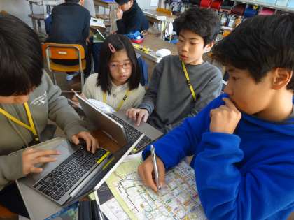 6年生は、来週の石碑めぐりに向けて、ルートを調べている最中です。