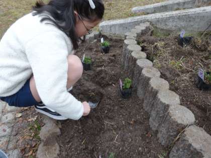 先週草抜きをした、ドリームワールドの花壇に、芝桜の苗を植えました。