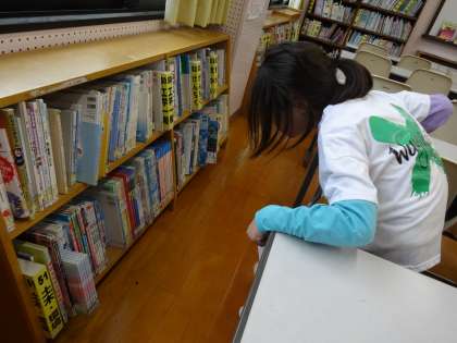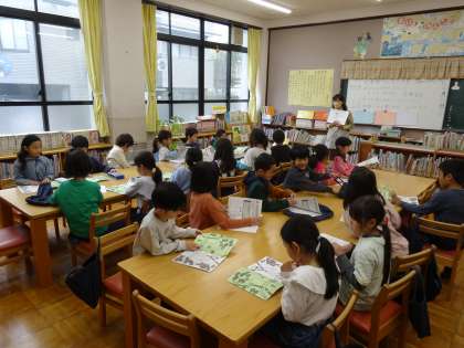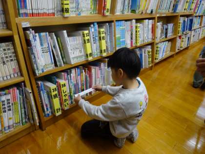 今日は図書館司書の先生と一緒に、ラベルから本を探す学習をしました。
