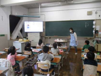 はみがきの仕方について保健室の先生に教わりました。