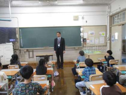 校長先生が1年生教室に来られました。