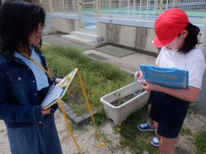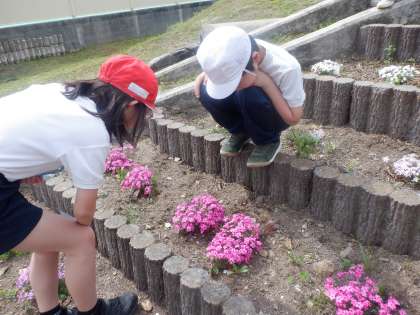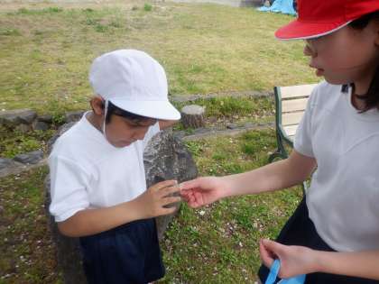 春の花や生きものを探しにいきました。見つけたものにシールをはっていき、ビンゴゲーム形式で取り組みました。午前中でしたので、あたたかな春の空気の中、学習ができました。