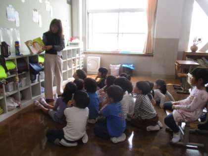 1年生はまだ学習が始まったばかりなので、今日は読み聞かせを行いました。