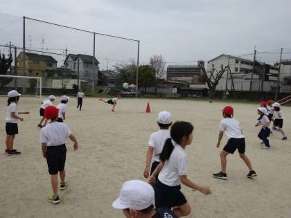 その後は、4年生対3年生でドッジボールをしました。