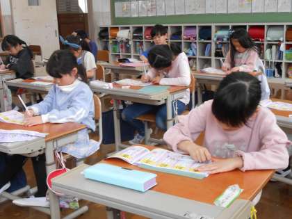 2年生では、漢字を160字習います。子どもたちは漢字を丁寧に書くことを頑張っています。今日は「知」と「春」を学びました。「春は、三人で日なたぼっこをする。で覚えよう!」とみんなで協力して楽しみながら学習をしています。