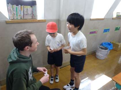 ALTの先生と一緒に、あいさつの学習です。