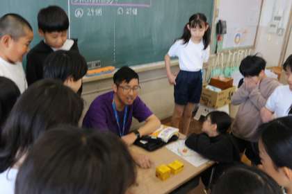 算数科の学習で新たな単元に突入しました。これまでの学習で面積は知っている子どもたちですが、今回は体積です。立体であることの違いをふまえた上で、問題の立体は1㎤が何個分なのか、考えてみました。ICTも便利ですが、やはり実際に具体物に触れたり見たりすることは大切です。子どもたちも実際に立体を目の前にすることで、学びをより確かなものにすることができたようです。