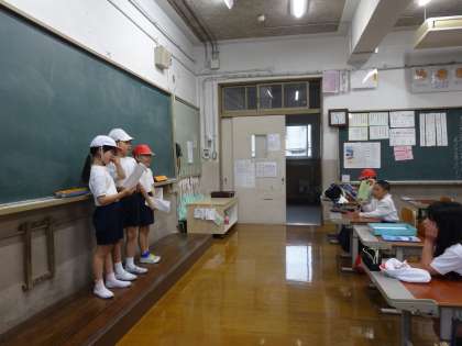 雨が降っていた中間休み、クイズ係が問題を出してくれました。