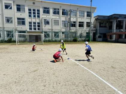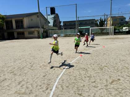 走順を話し合い、レースが始まると、とにかくみんな一生懸命走っていました。少し大きく差が開いてしまっている場面でも、最後まで全力で走る姿がありました。感動です。また、レース後には、相手チームの友達に「ナイスファイト」と声をかけるシーンもあり、言っている側も、言われている側もとても気持ちが良さそうでした。今後もリレーの学習が楽しみです。