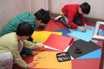 ちなみにこちらは製作中の子どもたちの様子です。いきなりこの姿を見ると何事かと思いますね。しかし、子どもたちは私が近づいてきたことにも気づかないレベルで集中していました。熱中する姿、こちらも刺激を受けます。