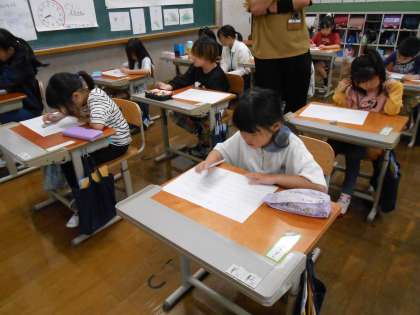 2年生になって初めて、ステップアップタイムがありました。子どもたちは集中して問題に取り組んでいました。今回は2年生で学習した内容の問題プリントでした。「こんな漢字だったような…あれ?」と忘れていた部分のあったようです。自主学習やベーシックタイム、そしてステップアップタイムなどで。どんどん復習していきましょう!