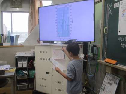算数科の折れ線グラフの学習も残すところあとわずかです。今日は、折れ線グラフと棒グラフが一つのグラフ上に合わさったグラフの読み取りを行いました。子どもたちにとっては、見慣れないグラフでしたが、棒グラフや折れ線グラフについて学んできたことを生かして、問われていることについてしっかりとグラフから読み取ることができていました。また、読み取ったことについて、どうしてそのように読み取ることができるのかということを言葉で説明するシェアタイムにも取り組みました。