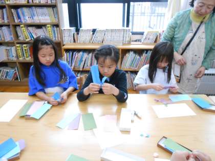 放課後に「ぶっくままクラブ」がありました。本の読み聞かせや工作があります。今回の工作はあじさいのちぎり絵でした。子どもたちは「ふわふわしてる」「きれい」といいながら、和紙の手触りを楽しみながら作品を作っていました。次回も楽しみですね。ぶっくままクラブのみなさん、ありがとうございました。
